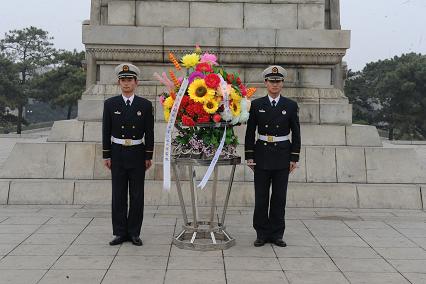 4月1日下午,我們?cè)谙到虇T常路賓帶領(lǐng)下,來(lái)到位于錦州的遼沈戰(zhàn)役紀(jì)念館,向英雄紀(jì)念碑敬獻(xiàn)花籃。儀式在雄壯激昂的《獻(xiàn)花曲》中拉開序幕,兩名禮兵邁著鏗鏘有力的禮步將花籃緩緩送到紀(jì)念塔正前方。花籃挽聯(lián)上寫道:“功業(yè)常齊天地永,紅旗自由后人擎;中國(guó)人民解放軍海軍工程大學(xué)敬挽。”在主持人的組織下,我們統(tǒng)一脫帽,向烈士紀(jì)念塔默哀一分鐘。并重溫了入伍宣誓。最后,教員對(duì)我們說(shuō)道:“同志們,歷史證明,強(qiáng)國(guó)必先強(qiáng)軍。今天的你們是以共和國(guó)未來(lái)海軍軍官的身份來(lái)到此地,更應(yīng)當(dāng)學(xué)習(xí)先烈們的優(yōu)秀品質(zhì),不斷磨礪自己,努力提升自己,在強(qiáng)軍興軍的征程上奉獻(xiàn)自己的青春熱血!”