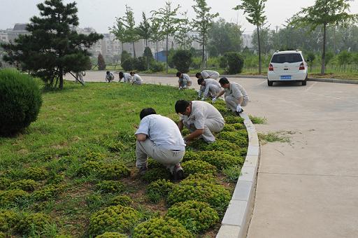 會(huì)后,一場(chǎng)黨員帶頭、員工共同參與的集體除草活動(dòng)熱火朝天地開展起來。大家有的用手拔、用的用鐮刀割、有的用袋裝、用的用車推,忙的不亦樂乎??煺邘椭撸贻p者幫助年長(zhǎng)者,大家一邊勞動(dòng),一邊互相問候,其樂融融。表面的雜草連根拔起,死角區(qū)域進(jìn)行了二次清除。烈日炎炎下,盡管很多人的臉上流下了晶瑩的汗滴,但他們依然在繼續(xù),沒有停歇。功夫不負(fù)有心人,經(jīng)過2個(gè)小時(shí)的辛勤勞動(dòng),責(zé)任區(qū)域內(nèi)的雜草、雜物被徹底清除。當(dāng)大家回望整潔有序的草坪時(shí),心中無比喜悅。